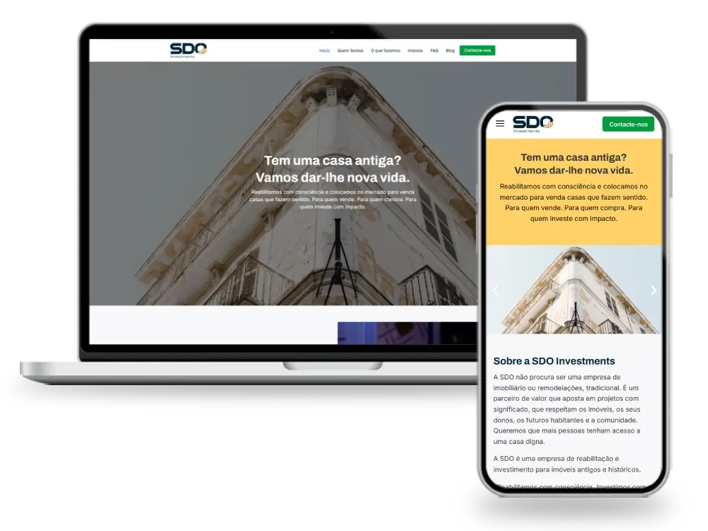 Criamos websites 100% responsivos, que se adaptam a qualquer ecrã, garantindo velocidade, estética e uma navegação fluida, seja no desktop, tablet ou smartphone.